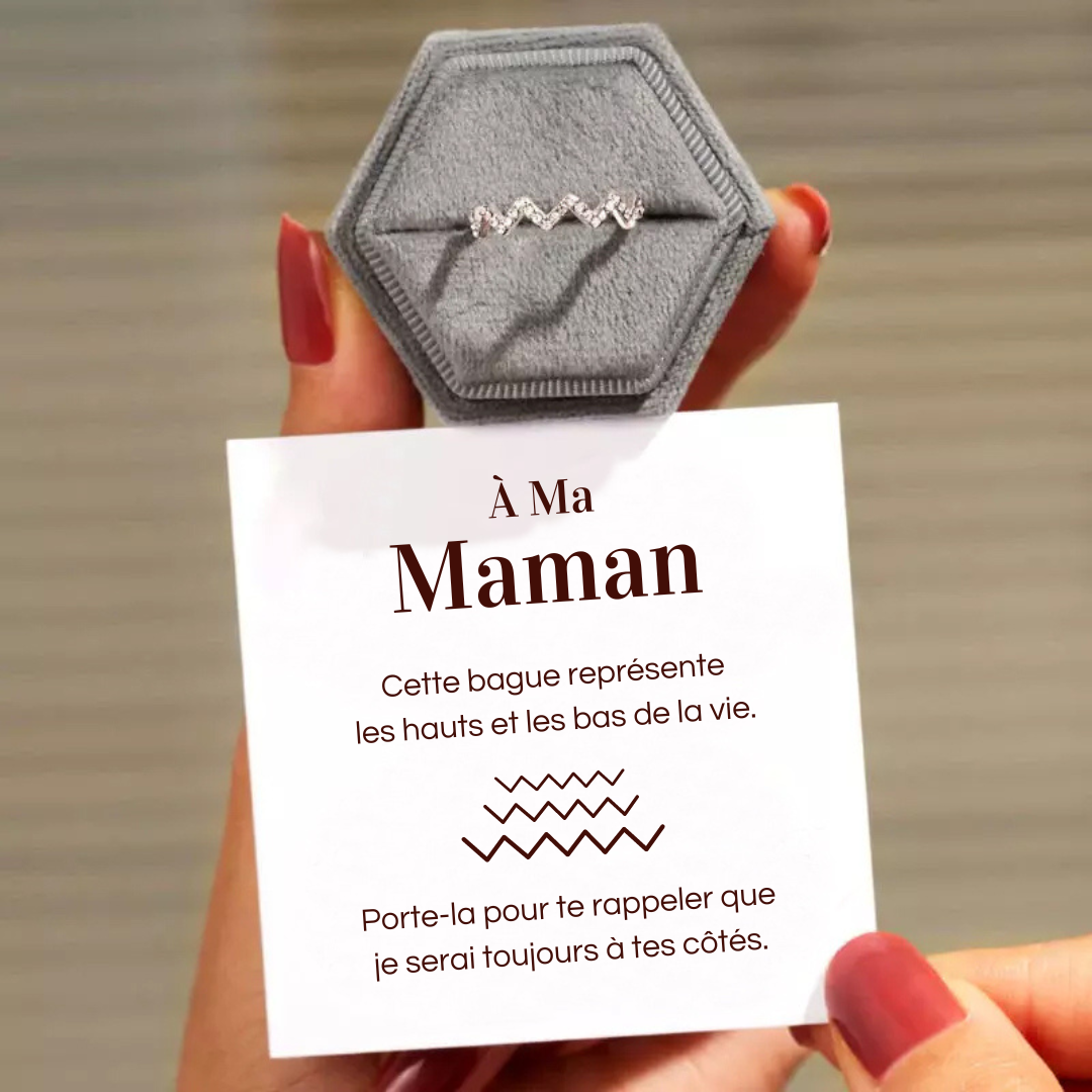 Cette bague représente joliment les hauts et les bas de la vie. Le message touchant de la carte ne laissera pas votre maman indifférente.